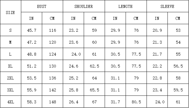 - The color could be slightly different between on the screen and in practice.Size Chart