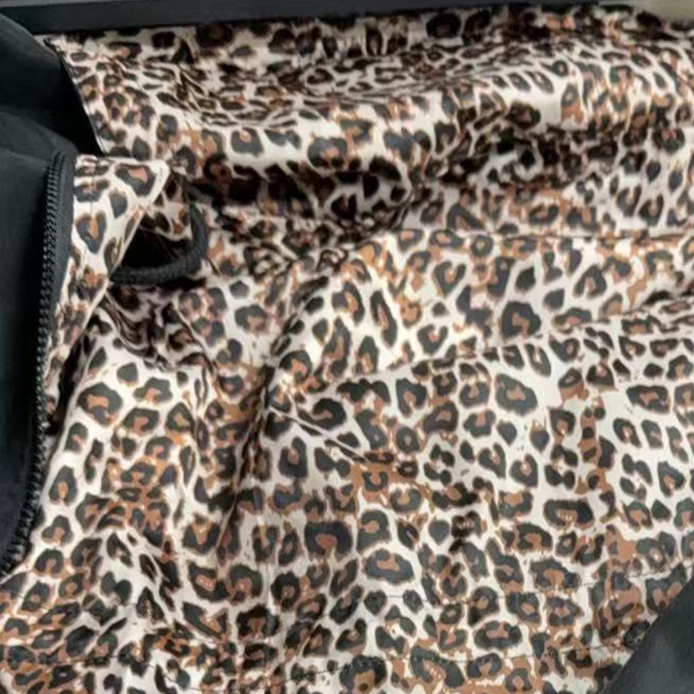 Flip it over, and you’ll reveal a bold leopard print, perfect for those days when you want to add a little wild energy to your look.Crafted from high-quality polyester fiber with soft filling, this jacket offers excellent warmth, water resistance, and comfort without feeling bulky. The adjustable hood and double-sided pockets add extra practicality for any weather.